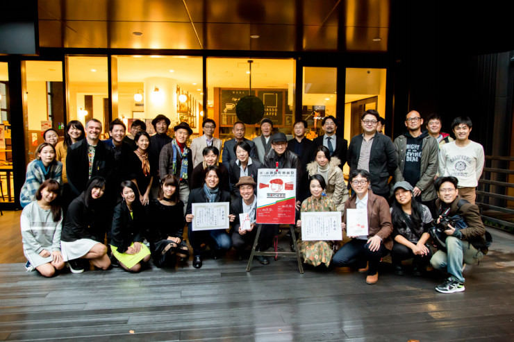 会場のHASSO CAFFEをバックに受賞者、ゲスト、スタッフ皆で記念撮影!