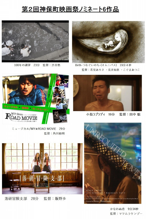 神保町映画祭コンペティションでの二次審査を通過し11月12日の上映が決まった作品をご紹介します! <ノミネート6作品(順不同)> ミュージカル/MY☆ROAD MOVIE 29分 角川裕明 100年の謝罪 23分 渋谷悠 かなわぬ恋 9分34秒 マツムラケンゾー... -