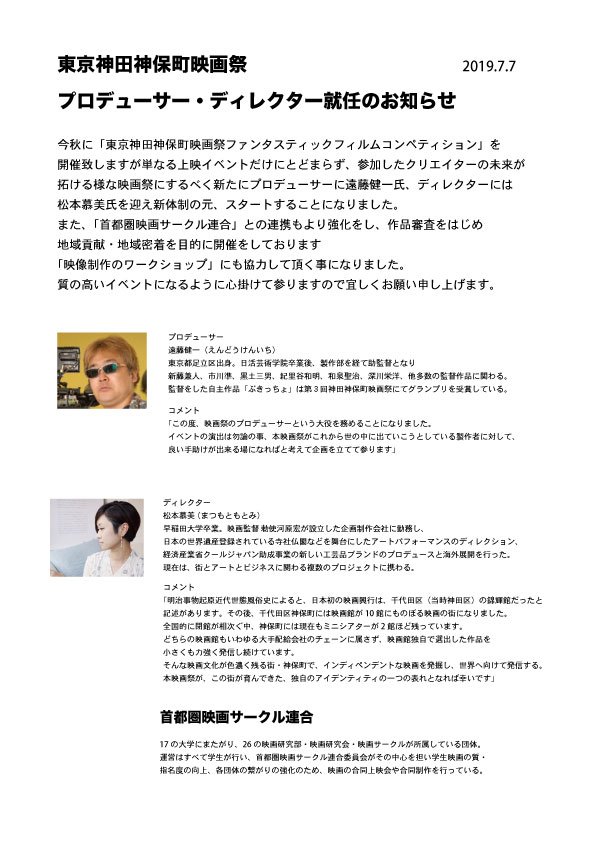 東京神田神保町映画祭プロデューサー・ディレクター就任のお知らせ